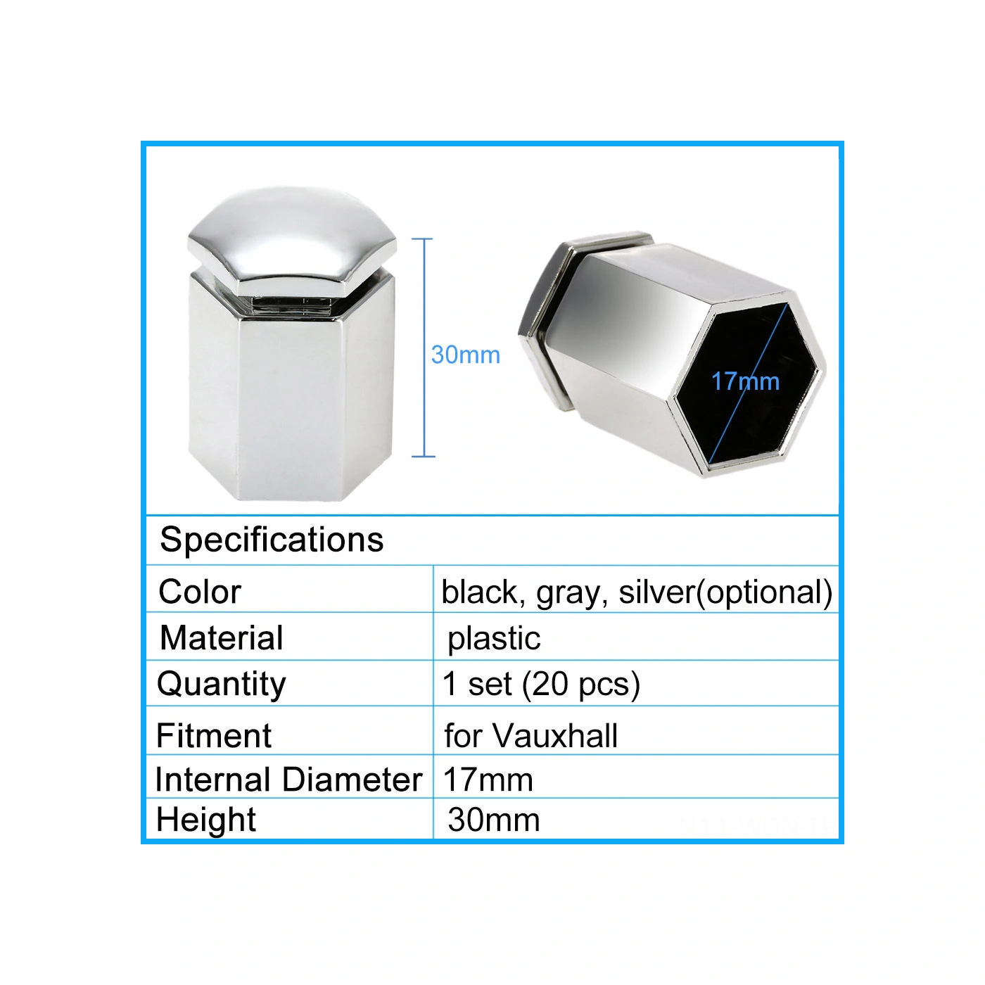 Neevoyu Vauxhall İçin 17mm Çelik Jant Somun Kapakları 20 Adet + Uygulama Aracı - Gümüş Renk, 30mm Yükseklik