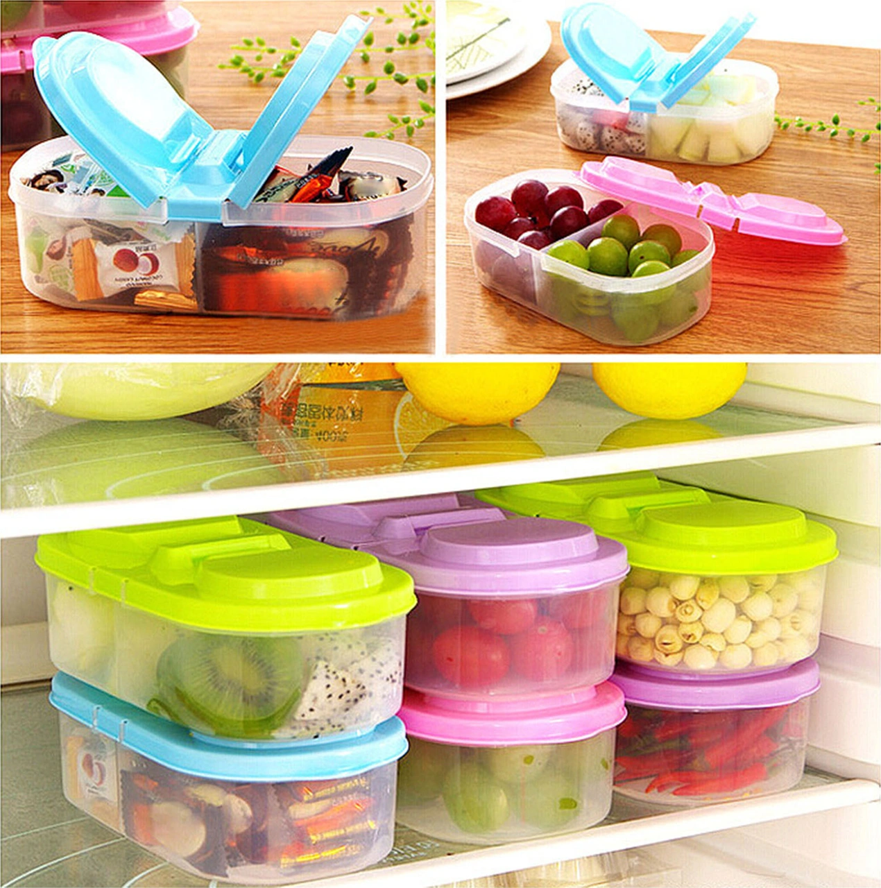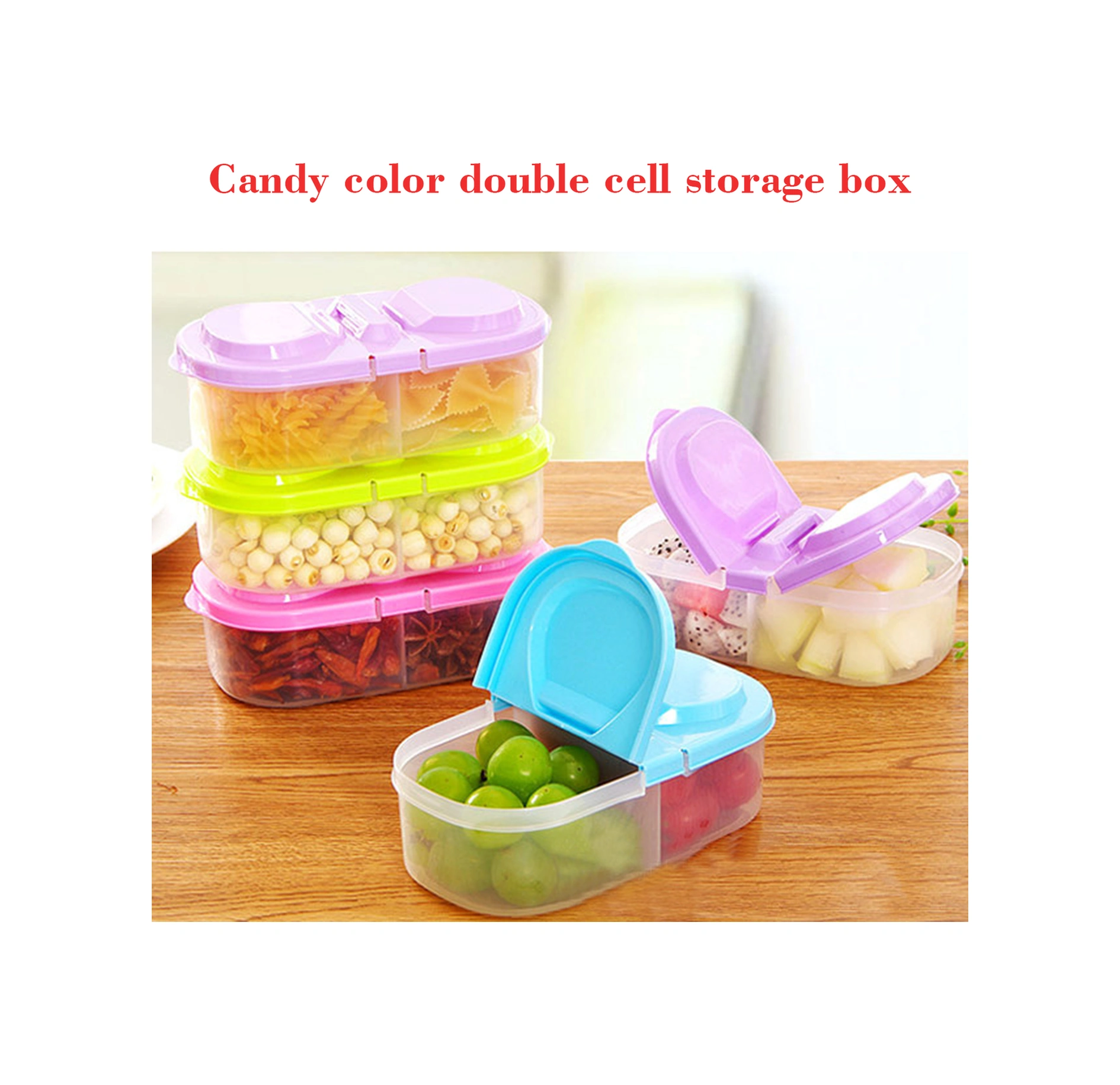 Suofeng Yeşil Çift Bölmeli Mutfak Depolama Kutusu, Gıda Ve Tahıllar İçin Hava Geçirmez Kapağı İle, Multifonksiyonel Plastik Buzdolabı Saklama Kutu Diğer