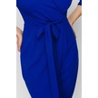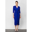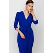 Nefeli V Yaka Midi Sarımlı Elbise - Minimalist Şık Günlük Saks