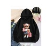 Nefes Alabilen Örme Kumaş, Karikatür Ayı & Kalp Baskılı Bol Kesim SiYAH
