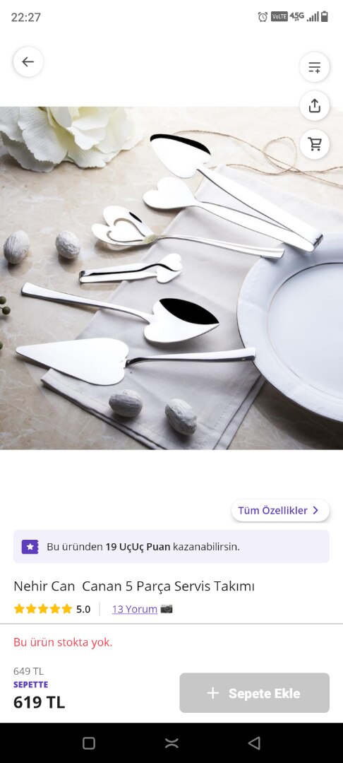 Mağaza dürüst. Ürün çok güzel. Eşim bayıldı. Tek sorun satın aldığımız ürün Nehir Can Canan 5 Parça Servis Takımı ama fatura açıklamasına nehir 4 PARÇA SALATA SERVİS TAKIMI yazılmış! Bunu neden belirtiyorum; nihayetinde garantili ürün, paslandı diyelim gittim bayisine fatura istedi, çıkardım bu faturayı verdim, fatura bu ürüne ait değil derseler ne yapacağım???