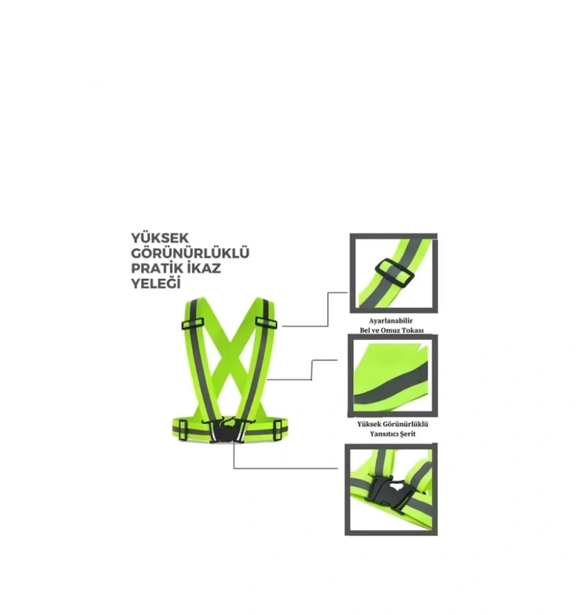 Neon İkaz Yeleği Tokalı Emniyet Kemeri Yelek Pratik Esnek Kumaş F.yeşil