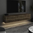 Neon Led Işıklı Duvara Monte,3 Kapaklı Tv Ünitesi,tv Sehpası Sandık Ceviz - İstanbul Ceviz İstanbul Ceviz