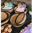 Hasır Eskitme Pembe Masa Üstü Meyvelik Mini Piknik Sepeti