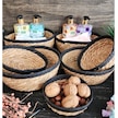 Bitki Tasarımı Düzenleyici Kulplu Üstü Siyah Şeritli Doğal Örgü Sepet İkili Set Orta-küçük