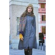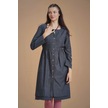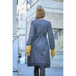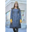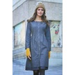 Nervürlü Yaka Dantelli Uzun Kollu Gri Elbise Desenli