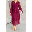 Neşeli Butik Kadın Astarlı Eteği Kat Kat Şifon Elbise Nbkklf2041 Bordo