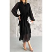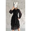 Neşeli Butik Kadın Astarlı Eteği Kat Kat Şifon Elbise Nbkklf2041 Siyah