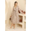 Neşeli Butik Kadın Bej Desenli Şifon Elbise Rssn32 Bej