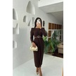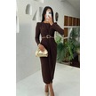 Neşeli Butik Kadın Bel Dekolteli Toka Detaylı Uzun Kollu Elbise Nbmy3655 Kahverengi
