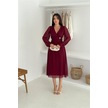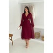 Neşeli Butik Kadın Bordo Astarlı Tokalı Şifon Elbise Nbk30281 Bordo