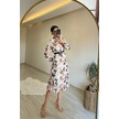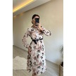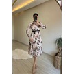 Neşeli Butik Kadın Desenli Gömlek Yaka Midi Elbise Nm011 Bej