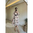 Eteği Volanlı Uzun Elbise Kırık Beyaz