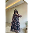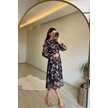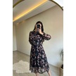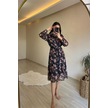 Neşeli Butik Kadın Desenli Gömlek Yaka Midi Elbise Nm011 Siyah
