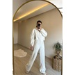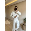 Neşeli Butik Kadın Fermuarlı Oversize Sweat Ve Yüksek Bel Eşofman Takımı Nm018 Ekru