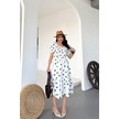 Neşeli Butik Kadın Kemerli Kare Yaka Çiçekli Midi Boy Elbise Nbks4104 Beyaz