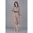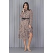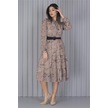 Neşeli Butik Kadın Kemerli Leopar Desenli Yeni Sezon Midi Boy Şifon Elbise Apcx04 Bej