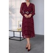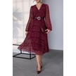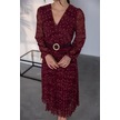 Neşeli Butik Kadın Kemerli Puantiye Desenli Şifon Elbise Nbmy3286 Bordo
