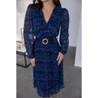 Neşeli Butik Kadın Kemerli Puantiye Desenli Şifon Elbise Nbmy3286 Mavi