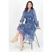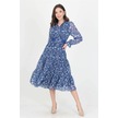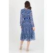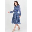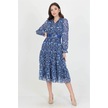 Neşeli Butik Kadın Kemerli Yakası Bağlama Detaylı Desenli Şifon Elbise Rssn02 Mavi