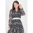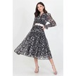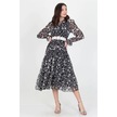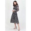Neşeli Butik Kadın Kemerli Yakası Bağlama Detaylı Desenli Şifon Elbise Rssn02 Siyah