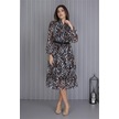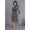 Neşeli Butik Kadın Kemerli Yeni Sezon Midi Boy Desenli Şifon Elbise Apcx04 Çok Renkli