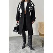 Neşeli Butik Kadın Kuşak Detaylı Astarlı Kaşe Kaban Nbg120 Siyah