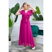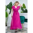 Neşeli Butik Kadın Mürdüm Kruvaze Yaka Bağlama Detaylı Uzun Şifon Elbise Nb0001 Mürdüm