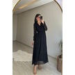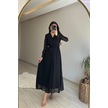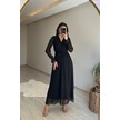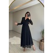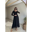 Neşeli Butik Kadın Uzun Kollu Kuşaklı Maxi Şifon Elbise Nm001 Siyah