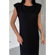 Neşeli Butik Kadın Vatkalı Yırtmaç Detaylı Modal Elbise Nbg010 Siyah