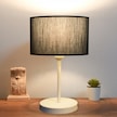Neva Beyaz Metal Ayaklı Modern Abajur Silindir Siyah Kumaş Başlık Siyah