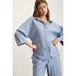 Kahverengi Yakası Fırfırlı Kuşaklı Saten Gömlek Kahve