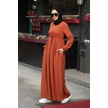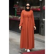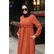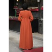 Neways 6497-Krep Süs Bağcıklı Büzgülü Elbise Kiremit