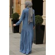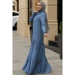 Neways 6564-Büzgülü Düğmeli Elbise Koyu Mavi