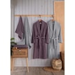 Newhome Alfa 6 Parça Kutulu %100 Pamuk Lüx Aile Bornoz Seti Mürdüm-gri Karışık