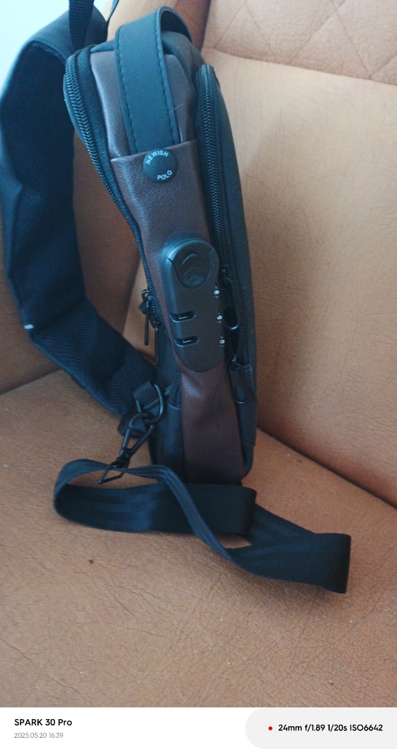 Newish Polo Siyah - Kahverengi Unisex Vegan Deri Ayarlanabilir Çapraz Askılı Göğüs Omuz Ve Bel Mini Sırt Çantası - Erkek Siyah - Kahverengi