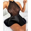 Nightlight Kadın Siyah Dantelli Kısa Saten Tül Gecelik 3143 Siyah