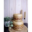Ün Ev 7038 Hasır Örme Kahverengi Çiçekli Ekmek Sepeti Renkli