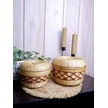 Üstü Kumaş Kaplı Hasır Ekmek Sepeti Dikdörtgen - Krem