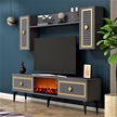 Nil Şömineli Tv Ünitesi Antrasit-altın
