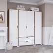 Nisan Açık Ceviz-beyaz 4 Kapılı 2 Çekmeceli Elbise Dolabı - Gardırop Seti Açık Ceviz & Beyaz