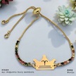 Nisan Ayı Doğumlarına Taç Motifli 14 Ayar Altın Plakalı Renkli Taş Desenli Hediye Bileklik-489ay Nisan