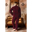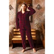 Nisanca Büyük Beden Kışlık Düğmeli Gömlek Pijama Takımı Bordo