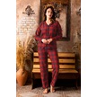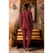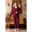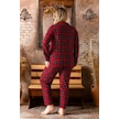 Nisanca Kışlık Düğmeli Ekose Desen Yılbaşı Temalı Kadın Süet Pijama Takımı - Bordo