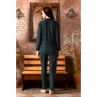 Nisanca Kışlık Düğmeli Ekose Desen Yılbaşı Temalı Kadın Süet Pijama Takımı Yesil