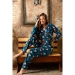 Nisanca Kışlık Yılbaşı Desenli Kadın Gömlek Polar Pijama Takımı- Geyikli Yılbaşı Pijaması Yesil Yeşil