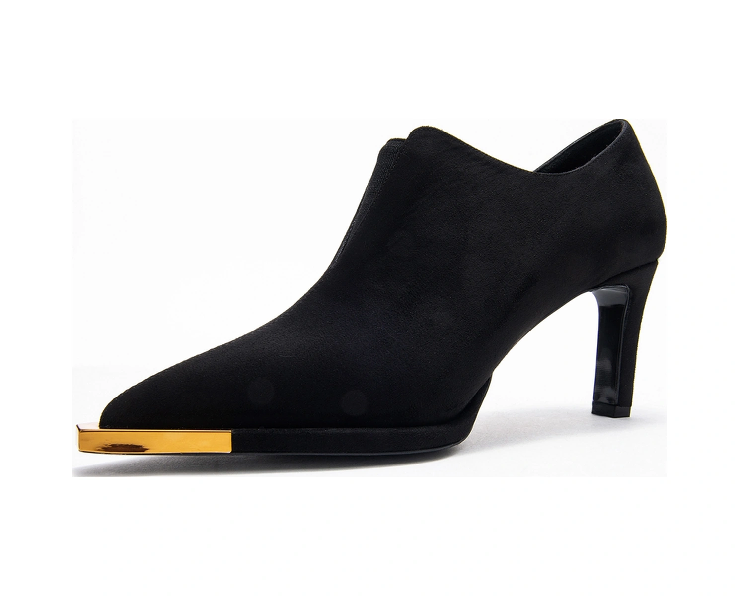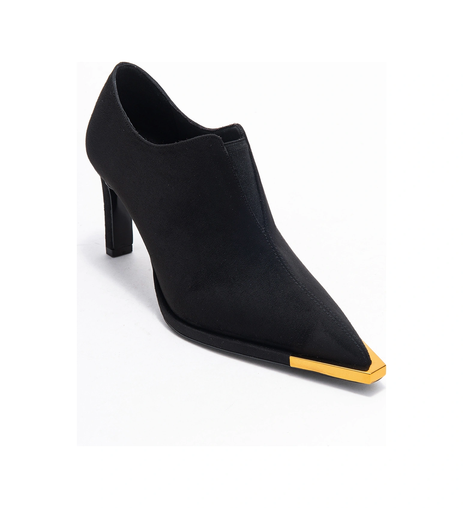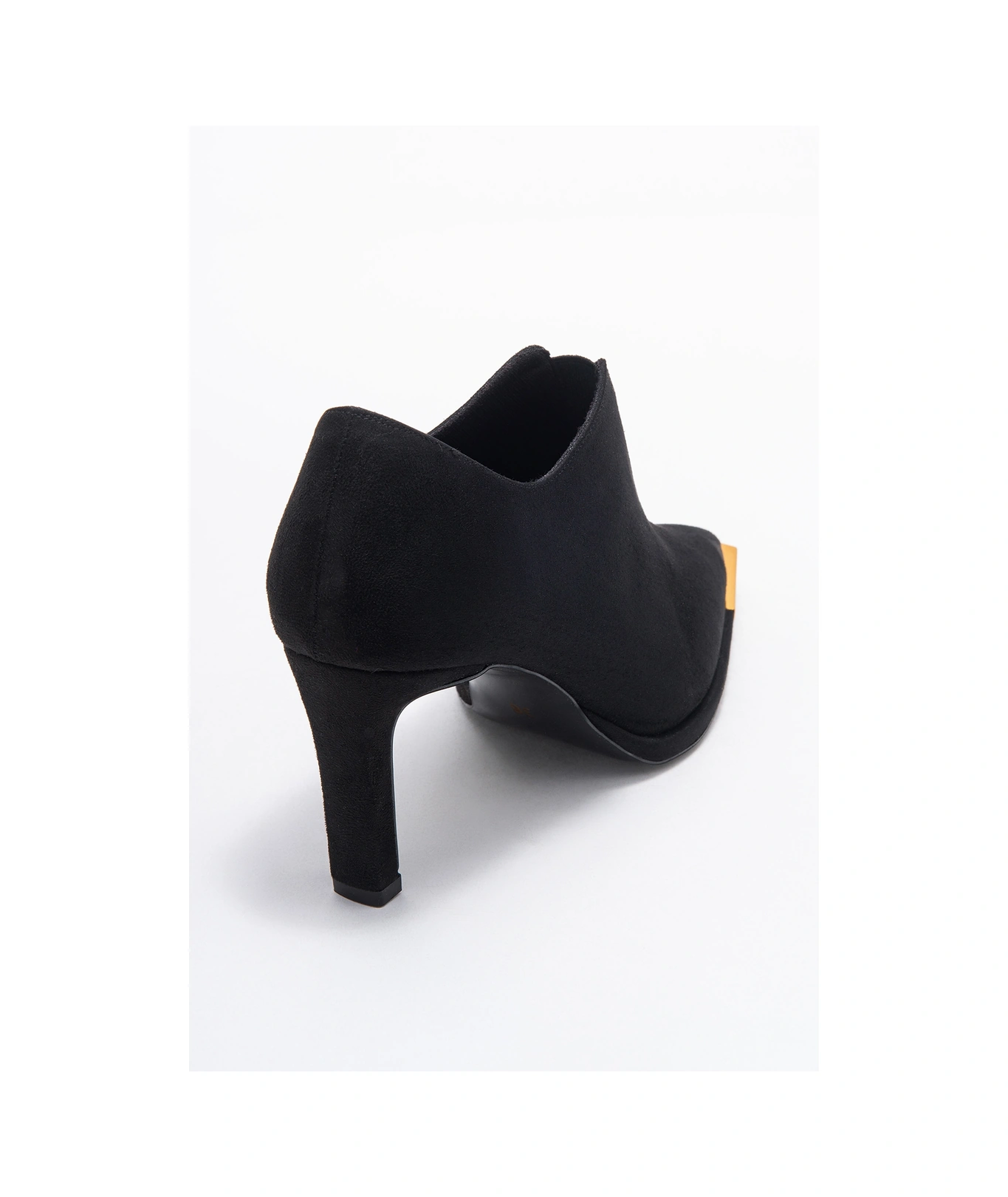 Nıva Siyah Süet Altın Detaylı Lastikli Kadın Bilekte Topuklu Ayakkabı SIYAH SUET