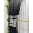 Nivemeshome Melanezya Siyah- Gold Şeritli 1/3 Sık Pileli Fon Perde Apm Siyah- Gold