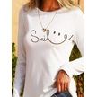 Nnstartshopping Kadın Uzun Kollu Bisiklet Yaka Gülümseyen Surat Desenli Viskon Bluz BEYAZ Beyaz