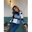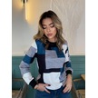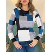 Nnstartshopping Kadın Uzun Kollu Bisiklet Yaka Renkli Blok Baskı Dalgıç Bluz Mavi